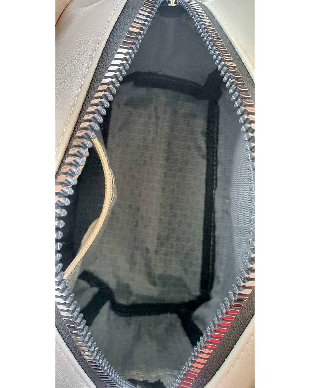 • 1 compartiment inchis cu fermoar,in interior are un buzunar cu fermoar si un buzunar fara fermoar